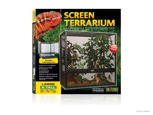 Az Exo-Terra Screen Terrárium (flexárium) tökéletes választás minden hüllőtartó számára, aki biztosítani szeretné kedvencének a kényelmes és egészséges életkörülményeket. A 90x45x90 cm-es méretének köszönhetően elegendő teret biztosít a felfedezéshez, míg korszerű kialakítása több szempontból is kimagasló élményt nyújt.