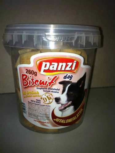 A Panzi Snack kekszek ideális jutalomfalatok a kutyások számára. Az analitikai összetevők között 10,1% nyers fehérje és 4,7% nyers zsírok találhatóak, amelyek elősegítik kutyája egészségének és vitalitásának fenntartását. A kekszek 260 g-os kiszerelésben kaphatók, és kérjük, hogy megrendelésnél tüntesd fel, melyik fajtát szeretnéd kapni!